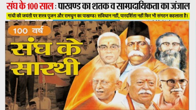 गांधी जिन्होंने अहिंसा को हथियार बनाया, सत्य और न्याय के सहारे करोड़ों भारतीयों को अंग्रेजों के खिलाफ खड़ा किया। संघ जिसकी वैचारिक प्रयोगशाला से निकला वह जहर जिसने 30 जनवरी 1948 को गांधी की हत्या की। आज वही संघ गांधी की प्रतिमा के सामने रामधुन गा रहा है, और उसी दिन शस्त्र पूजन करके हथियारों को आशीर्वाद दे रहा है। यही है संघ की असली पहचान अहिंसा की आड़ में हिंसा, श्रद्धांजलि की आड़ में पाखण्ड। यह सौ साल के सफर की कहानी है। सौ साल पाखण्ड के, सौ साल छलावे के, सौ साल उस जहर को बोने के जिसे अब वह फल-फूल बनाकर परोस रहा है।