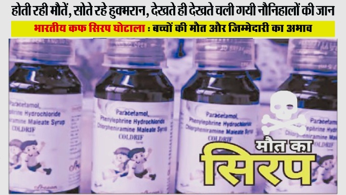 * कफ सिरप घोटाले ने बच्चों की जान ले ली, परिवारों को तोड़ा व स्वास्थ्य तंत्र को शर्मसार किया।