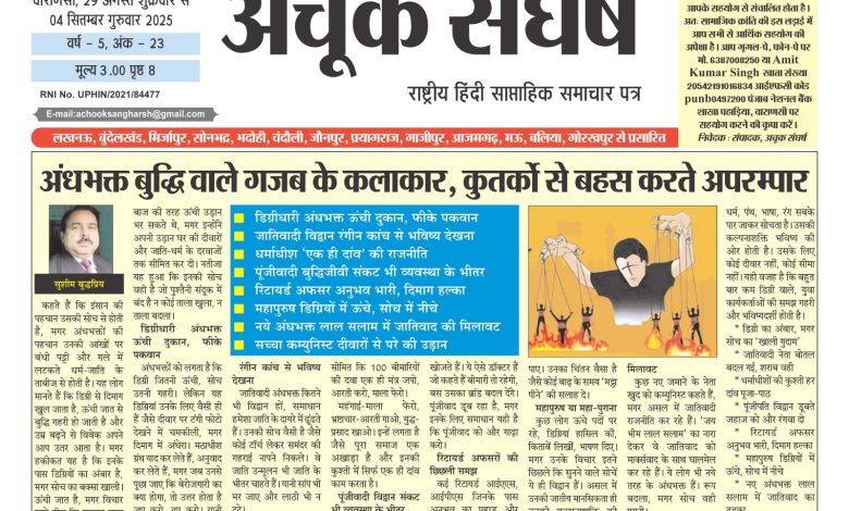 कहते हैं कि इंसान की पहचान उसकी सोच से होती है, मगर अंधभक्तों की पहचान उनकी आंखों पर बंधी पट्टी और गले में लटकते धर्म-जाति के ताबीज से होती है। यह लोग मानते हैं कि डिग्री से दिमाग खुल जाता है, ऊंची जात से बुद्धि गहरी हो जाती है और उम्र बढ़ने से विवेक अपने आप उतर आता है। मगर हकीकत यह है कि इनके पास डिग्रियों का अंबार है, मगर सोच का बक्सा खाली। ऊंची जात है, मगर विचार इतने नीच कि सुनकर बाज भी शर्मा जाए। उम्र ढल गई, मगर समझ बचपन की जिद से आगे नहीं बढ़ी। ये लोग बाज की तरह ऊंची उड़ान भर सकते थे, मगर इन्होंने अपनी उड़ान घर की दीवारों और जाति-धर्म के दरवाजों तक सीमित कर दी। नतीजा यह हुआ कि इनकी सोच वही है जो पुश्तैनी संदूक में बंद है न कोई ताला खुला, न ताला बदला।