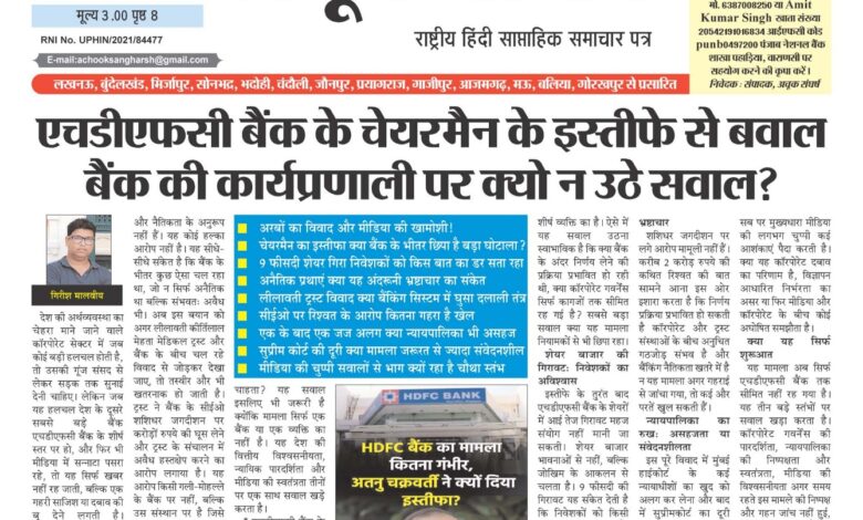 यह मामला अब सिर्फ एचडीएफसी बैंक तक सीमित नहीं रह गया है। यह तीन बड़े स्तंभों पर सवाल खड़ा करता है। कॉरपोरेट गवर्नेंस की पारदर्शिता, न्यायपालिका की निष्पक्षता और स्वतंत्रता, मीडिया की विश्वसनीयता अगर समय रहते इस मामले की निष्पक्ष और गहन जांच नहीं हुई, तो इसका असर बैंकिंग सेक्टर की साख और देश की आर्थिक छवि तीनों पर पड़ सकता है। इतने बड़े घटनाक्रम के बावजूद अगर सन्नाटा है, तो यह सन्नाटा खुद एक खबर है। यह मामला सिर्फ एक इस्तीफे या एक विवाद का नहीं, बल्कि उस पूरे सिस्टम का है, जो पारदर्शिता और जवाबदेही का दावा करता है। क्या नियामक संस्थाएं सक्रिय होंगी, क्या जांच एजेंसियां सच्चाई तक पहुंचेगी या फिर यह मामला भी फाइलों में दबकर रह जाएगा? क्योंकि सवाल सिर्फ इतना नहीं है कि चेयरमैन ने इस्तीफा क्यों दिया सवाल यह है कि क्या देश की वित्तीय व्यवस्था के भीतर कुछ ऐसा चल रहा है, जिसे हमसे छिपाया जा रहा है?