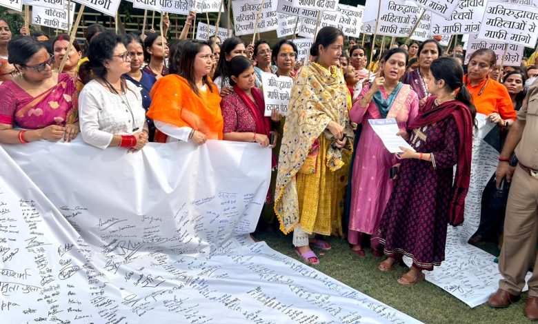 नायब तहसीलदार प्रीति पांडे ने आक्रोशित महिलाओं से ज्ञापन लेते हुए कार्रवाई का दिया आश्वासन