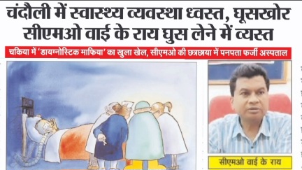 चंदौली में स्वास्थ्य व्यवस्था ध्वस्त, घूसखोर सीएमओ वाइ के राय घुस लेने व्यस्त