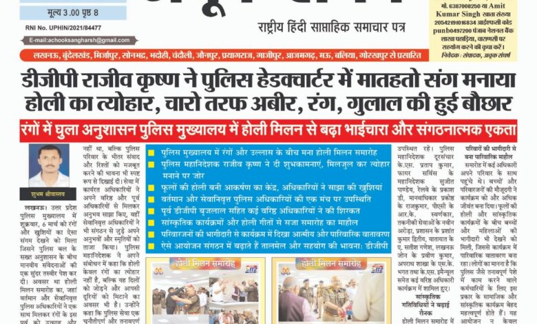 • उत्तर प्रदेश पुलिस मुख्यालय में 6 मार्च को होली मिलन समारोह आयोजित