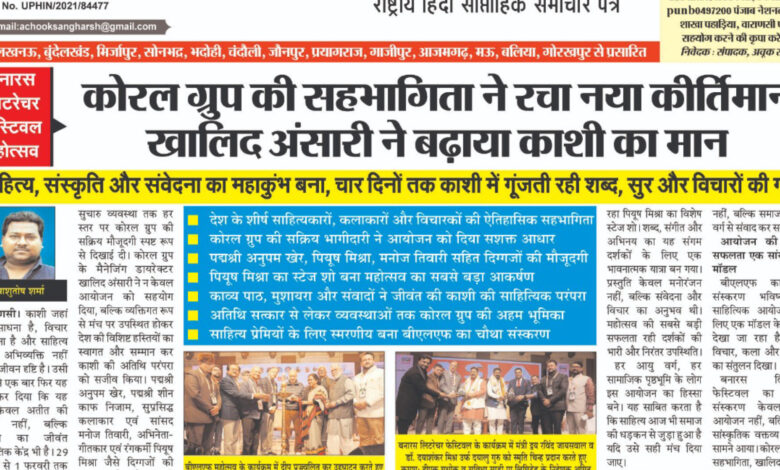 वाराणसी। काशी जहां शब्द साधना है, विचार आराधना है और साहित्य केवल अभिव्यक्ति नहीं बल्कि जीवन दृष्टि है।उसी काशी ने एक बार फिर यह सिद्ध कर दिया कि यह नगर केवल अतीत की धरोहर नहीं, बल्कि वर्तमान का जीवंत सांस्कृतिक केंद्र भी है। 29 जनवरी से 1 फरवरी तक आयोजित बनारस लिटरेचर फेस्टिवल के चौथे संस्करण ने साहित्य, संस्कृति और कला के क्षेत्र में एक ऐसा मानक स्थापित किया, जिसे आने वाले वर्षों तक याद किया जाएगा। चार दिनों तक चले इस साहित्यिक महोत्सव में काशी का हर कोना शब्दों की ऊर्जा, विचारों की उष्मा और रचनात्मकता की चमक से आलोकित रहा। देश के प्रतिष्ठित साहित्यकार, कवि, कलाकार, रंगकर्मी, चिंतक और सांस्कृतिक हस्तियां इस मंच पर एकत्र हुईं और उन्होंने अपने विचारों, अनुभवों और रचनाओं के माध्यम से समाज, समय और संवेदना पर गहन संवाद स्थापित किया। इस भव्य आयोजन की सफलता के पीछे जहां आयोजकों की दूरदृष्टि और प्रतिबद्धता रही, वहीं कोरल ग्रुप की सहभागिता ने इसे धरातल पर साकार करने में निर्णायक भूमिका निभाई। आयोजन की व्यवस्थाओं से लेकर अतिथि सत्कार, मंचीय समन्वय से लेकर सांस्कृतिक कार्यक्रमों की सुचारु व्यवस्था तक हर स्तर पर कोरल ग्रुप की सक्रिय मौजूदगी स्पष्ट रूप से दिखाई दी। कोरल ग्रुप के मैनेजिंग डायरेक्टर खालिद अंसारी ने न केवल आयोजन को सहयोग दिया, बल्कि व्यक्तिगत रूप से मंच पर उपस्थित होकर देश की विशिष्ट हस्तियों का स्वागत और सम्मान कर काशी की अतिथि परंपरा को सजीव किया। पद्मश्री अनुपम खेर, पद्मश्री शीन काफ निजाम, सुप्रसिद्ध कलाकार एवं सांसद मनोज तिवारी, अभिनेता-गीतकार एवं रंगकर्मी पियूष मिश्रा जैसे दिग्गजों की उपस्थिति ने महोत्सव की गरिमा को और ऊंचा किया। विशेष रूप से पियूष मिश्रा का स्टेज शो इस संस्करण का यादगार क्षण बनकर उभरा। शब्द, संगीत और अभिनय का उनका संगम दर्शकों को मंत्रमुग्ध कर गया। सभागार तालियों की गड़गड़ाहट से गूंज उठा और यह प्रस्तुति महोत्सव के सबसे चर्चित और सराहे गए आयोजनों में शामिल हो गई। बनारस लिटरेचर फेस्टिवल का चौथा संस्करण इस मायने में भी विशिष्ट रहा कि यहां साहित्य को किसी एक विधा तक सीमित नहीं किया गया। काव्य पाठ, मुशायरा, साहित्यिक संवाद, विचार गोष्ठियां और विविध सांस्कृतिक प्रस्तुतियों ने काशी की बहुस्तरीय सांस्कृतिक विरासत को समग्रता में प्रस्तुत किया। यह आयोजन केवल एक साहित्यिक उत्सव नहीं था, बल्कि यह उस सांस्कृतिक चेतना का उत्सव था, जो काशी की आत्मा में सदियों से प्रवाहित होती रही है। और इसी चेतना को मंच, स्वर और दिशा देने में कोरल ग्रुप की भूमिका उल्लेखनीय रही जिसकी सराहना स्वयं साहित्य जगत के गणमान्य व्यक्तियों ने खुले मंच से की।
