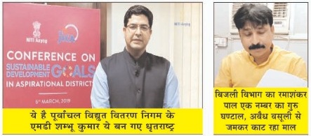बिजली विभाग के कार्यकारी अधिकारी रमाशंकर पर एमडी शम्भू कुमार मेहरबान,योगी की नीतियां भ्र्ष्टाचार पर हुई कुर्बान