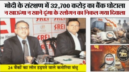 मोदी के संरक्षण में 32,700 करोड़ का बैंक घोटाला, न खाऊंगा न खाने दूंगा के स्लोगन का निकल गया दिवाला