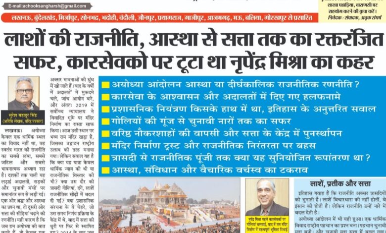 लखनऊ । अयोध्या केवल एक धार्मिक स्थल का विवाद नहीं था, वह स्वतंत्र भारत की राजनीति का सबसे लंबा, सबसे जटिल और सबसे भावनात्मक अध्याय रहा है। दशकों तक चली यह लड़ाई अदालतों, सड़कों और चुनावी मंचों पर समानांतर रूप से लड़ी गई। एक ओर श्रद्धा और आस्था का प्रश्न था, तो दूसरी ओर सत्ता की सीढ़ियां चढ़ने की रणनीति। यही कारण है कि जब हम अयोध्या की बात करते हैं, तो केवल एक मंदिर या एक ढांचे की बात नहीं करते हम उस राजनीतिक परियोजना की बात करते हैं जिसने भारतीय लोकतंत्र की दिशा और भाषा दोनों को बदल दिया। 6 दिसंबर 1992 को बाबरी मस्जिद का ढांचा गिरा दिया गया। उससे पहले कार सेवा के नाम पर यह आश्वासन दिया गया था कि संरचना को कोई क्षति नहीं पहुंचेगी। सर्वोच्च न्यायालय में हलफनामे दिए गए थे। राज्य सरकार ने भरोसा दिलाया था कि कानून-व्यवस्था बनाए रखी जाएगी। लेकिन घटनाक्रम ने दूसरी दिशा ले ली। ढांचा गिरा, देशभर में दंगे भड़के, हजारों जानें गईं, और एक धार्मिक विवाद स्थायी राजनीतिक पूंजी में बदल गया। इस पूरे दौर में प्रशासनिक तंत्र की भूमिका, राजनीतिक नेतृत्व की जिम्मेदारी और न्यायपालिका के निर्देशों की अवहेलना ये सब प्रश्न इतिहास के पन्नों में दर्ज हैं, पर सार्वजनिक विमर्श में अक्सर भावनाओं की धुंध में खो जाते हैं। बाद के वर्षों में अदालतों में मुकदमे चले, जांच आयोग बने, और अंततः 2019 में सर्वोच्च न्यायालय ने विवादित भूमि पर मंदिर निर्माण का रास्ता साफ किया। आज उसी स्थान पर भव्य राम मंदिर खड़ा है, जिसका उद्घाटन राष्ट्रीय उत्सव की तरह मनाया गया। लेकिन सवाल यह है कि क्या यह यात्रा केवल धार्मिक न्याय की थी या राजनीतिक विस्तार की भी? क्या उस दौर की त्रासदी गोलियां, दंगे, लाशें राजनीतिक सीढ़ी में बदल दी गईं? क्या प्रशासनिक संरचना के वे चेहरे, जो उस समय निर्णय प्रक्रिया के केंद्र में थे, बाद में सत्ता की धुरी पर फिर से स्थापित हुए? 2014 के बाद जब केंद्र में नई सरकार बनी और नरेंद्र मोदी ने सत्ता संभाली, तब सेवानिवृत्ति की दहलीज पार कर चुके कुछ वरिष्ठ नौकरशाहों को वापस बुलाया गया। उनमें से एक को प्रधानमंत्री कार्यालय में प्रधान सचिव जैसा अत्यंत शक्तिशाली पद सौंपा गया। बाद में वही व्यक्ति मंदिर निर्माण से जुड़े ट्रस्ट ढांचे में केंद्रीय भूमिका में दिखाई दिए। यह महज प्रशासनिक दक्षता का सम्मान था या राजनीतिक विश्वास का पुरस्कार।