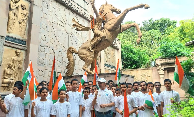 वाराणसी। स्वतंत्रता संग्राम में अपनी वीरता और बलिदान से देशवासियों में राष्ट्रभक्ति की भावना जगाने वाली वीरांगना महारानी लक्ष्मीबाई की जन्मस्थली पर सोमवार को हर घर तिरंगा-हर घर स्वच्छता की गूंज रही । नमामि गंगे ने श्री मारवाड़ी सेवा संघ संस्कृत उच्चतर माध्यमिक विद्यालय के वेदपाठी बटुकों के साथ भारतीय स्वतंत्रता संग्राम में महत्वपूर्ण भूमिका निभाने वाली और भारतीय वसुंधरा को गौरवान्वित करने वाली वीरांगना लक्ष्मीबाई की आरती उतार कर हर घर तिरंगा फहराने का आवाह्न किया । हर घर स्वच्छता अभियान के तहत राष्ट्र आराधक रानी लक्ष्मी बाई की जन्मस्थली पर स्वच्छता अभियान चलाया गया। वीरांगना की जन्मस्थली पर चहुंओर हर घर तिरंगा, हर सपना तिरंगा, हर मन तिरंगा, हर दिल तिरंगा गूंजता रहा। महारानी लक्ष्मी बाई की आरती के दौरान स्वस्तिवाचन और द्वादश ज्योतिर्लिंगों का पाठ किया गया । नमामि गंगे काशी क्षेत्र के संयोजक व नगर निगम के स्वच्छता ब्रांड एंबेसडर राजेश शुक्ला ने कहा कि ‘हर घर तिरंगा’ अभियान राष्ट्रीय ध्वज को हर भारतीय के घर तक पहुंचाने वाला एक राष्ट्रव्यापी आंदोलन है। यह हमारी साझा पहचान, स्वतंत्रता और एकता का एक भव्य उत्सव है । तिरंगा सिर्फ एक ध्वज नहीं, यह हमारे त्याग, गर्व और एकता का प्रतीक है। ‘हर घर तिरंगा’ अभियान ने पूरे भारत को एक सूत्र में बाँध दिया है, कश्मीर से कन्याकुमारी तक, हर दिल में भारत माँ का गौरव लहरा रहा है। आइए हम सभी इस राष्ट्रव्यापी अभियान में शामिल हों और स्वतंत्रता का उत्सव मनाने के साथ उन वीर बलिदानियों को नमन करें जिन्होंने देश की संस्कृति, स्वतंत्रता व सम्मान के लिए अपना सर्वस्व अर्पित कर दिया। आयोजन में प्रमुख रूप से नमामि गंगे काशी क्षेत्र के संयोजक व नगर निगम के स्वच्छता ब्रांड एम्बेसडर राजेश शुक्ला, विद्यालय के प्रबंधक मनोज पाण्डेय, अप्रतिम चौबे एवं श्री मारवाड़ी सेवा संघ संस्कृत उच्चतर माध्यमिक विद्यालय के बटुक शामिल रहे ।