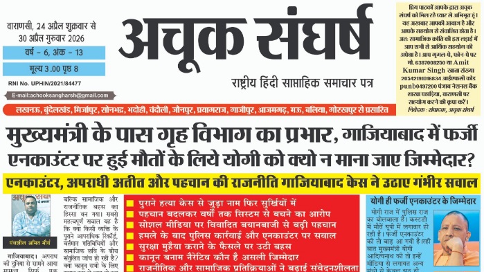 Home/News/E-Paper: अचूक संघर्ष 24 अप्रैल – 30 अप्रैल 2026 News E-Paper: अचूक संघर्ष 24 अप्रैल – 30 अप्रैल 2026 Achook Sangharsh2 days ago0 3 Less than a minute Achook Sangharsh2 days ago0 3 Less than a minute Facebook X LinkedIn Tumblr Pinterest Reddit VKontakte Share via Email Print