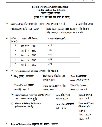* न्यायालय के आदेश पर19 जुलाई 2025 को दर्ज हुई एफआईआर लेकिन बे-ईमान ब्रजेश नारायण सिंह ने अभी तक कोई कार्यवाही क्यो नही किया?